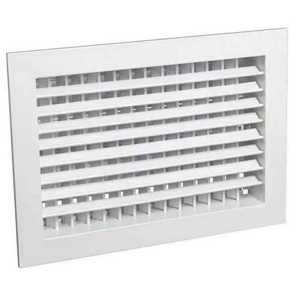 Решетки с регулируемыми жалюзи в два ряда применяют как для притока, так и для вытяжки. Регулировка каждой ламели в отдельности позволяет создавать необходимую конфигурацию потока воздушной струи. Жалюзи установлены на раму решетки при помощи пружинной проволоки без каких либо пластиковых деталей. Регулировка каждой ламели вокруг своей оси производится в ручную. По запросу фланец решетки может иметь отверстия под саморезы, а так же скрытое крепление с помощью пружинных защелок. Мы рекомендуем не делать крепление на защелках для решеток больше чем 600х600 мм.