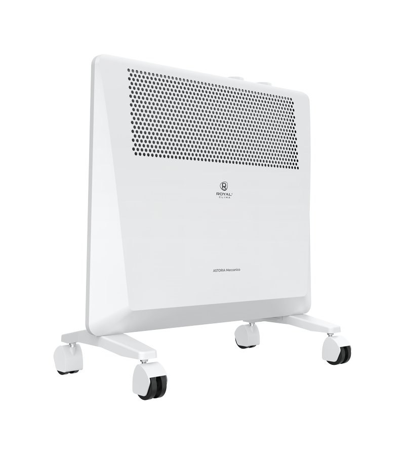 ASTORIA Meccanico обладает устойчивой конструкцией на колёсах. Механическая панель управления конвектора расположена на верхней части для комфортного и удобного использования. Возможна установка прибора на стену, все необходимое уже входит в комплектацию.