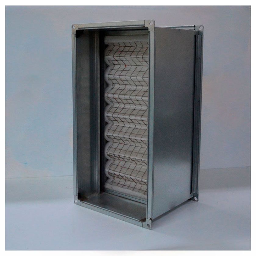 Фильтр может устанавливаться вертикально или горизонтально. Фильтр бокс - это корпус для воздушного фильтра в системе вентиляции. Корпуса для воздушных фильтров бывают круглыми и прямоугольными и предназначены для каналов в системе вентиляции. Фильтр боксы изготавливаться из оцинкованной стали и снабжены резиновыми уплотнителями для подсоединения к другим элементам системы. Крышка крепится к корпусу самого бокса защёлками или специальными винтами.