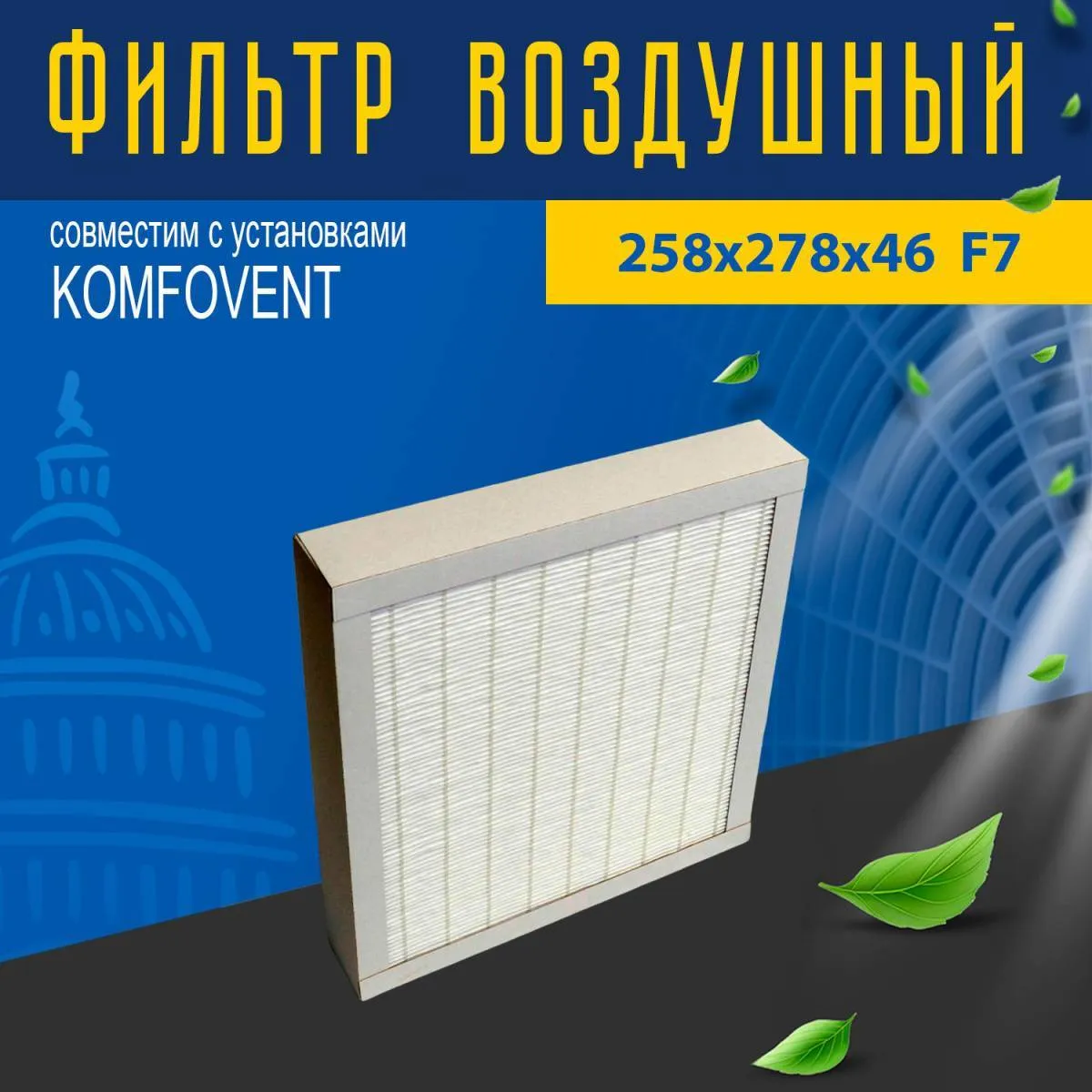 Сменный фильтр 258x278x46 класса F7 для установок Domekt-R-250-F и Domekt-R-400-F.