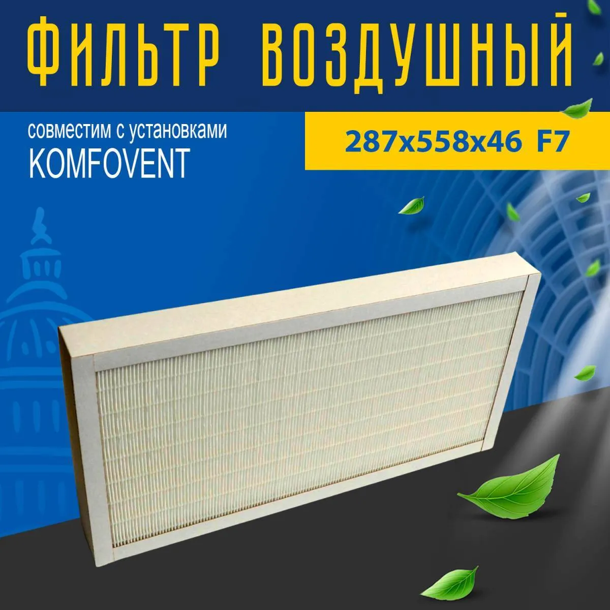 Сменный фильтр 287x558x46 класса F7 для установок Domekt-S-1000-F и Verso-S-1300-F.