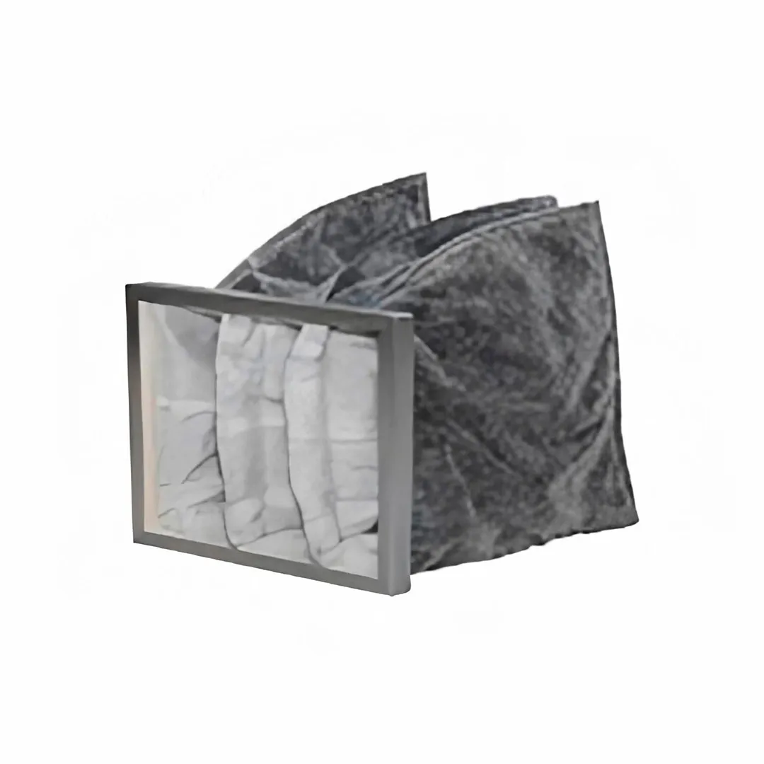 - Фильтр воздушный карманный угольный, фильтрующий материал зафиксирован проволокой 4–5 мм, размер 750х260 мм, толщина рамки 55 мм, глубина кармана 360 мм, количество карманов 9, класс очистки F7.