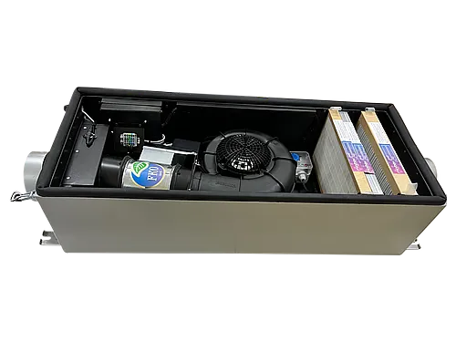 Автоматика Zentec — 7 скоростей. Содержит необходимый набор функций для управления вашей приточной установкой без возможности подключения дополнительного оборудования. Отображение информации на пульте цифровое. В данной автоматике можно изменить скорость вентилятора, изменить нагрев воздуха, и установить таймер на включение и выключение установки. Удаленный доступ только на Андройд платформе.