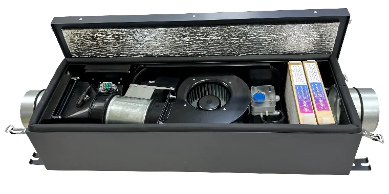 Автоматика Zentec — 7 скоростей. Содержит необходимый набор функций для управления вашей приточной установкой без возможности подключения дополнительного оборудования. Отображение информации на пульте цифровое. В данной автоматике можно изменить скорость вентилятора, изменить нагрев воздуха, и установить таймер на включение и выключение установки. Удаленный доступ только на Андройд платформе.