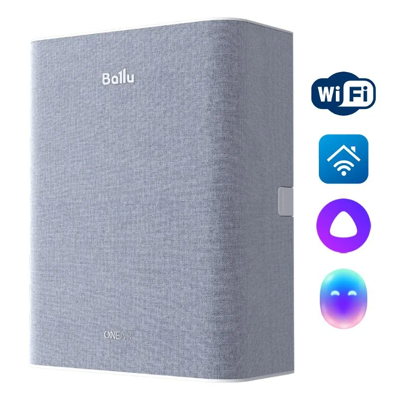 В Ballu ONEAIR ASP-100H встроен Wi-Fi-модуль, который позволяет управлять вентиляцией с помощью приложения Hommyn. Кроме того, бризер можно интегрировать в «умный дом» с «Алисой» от «Яндекса», с «Марусей» от VK, «умный дом» Sber и экосистему Hommyn.