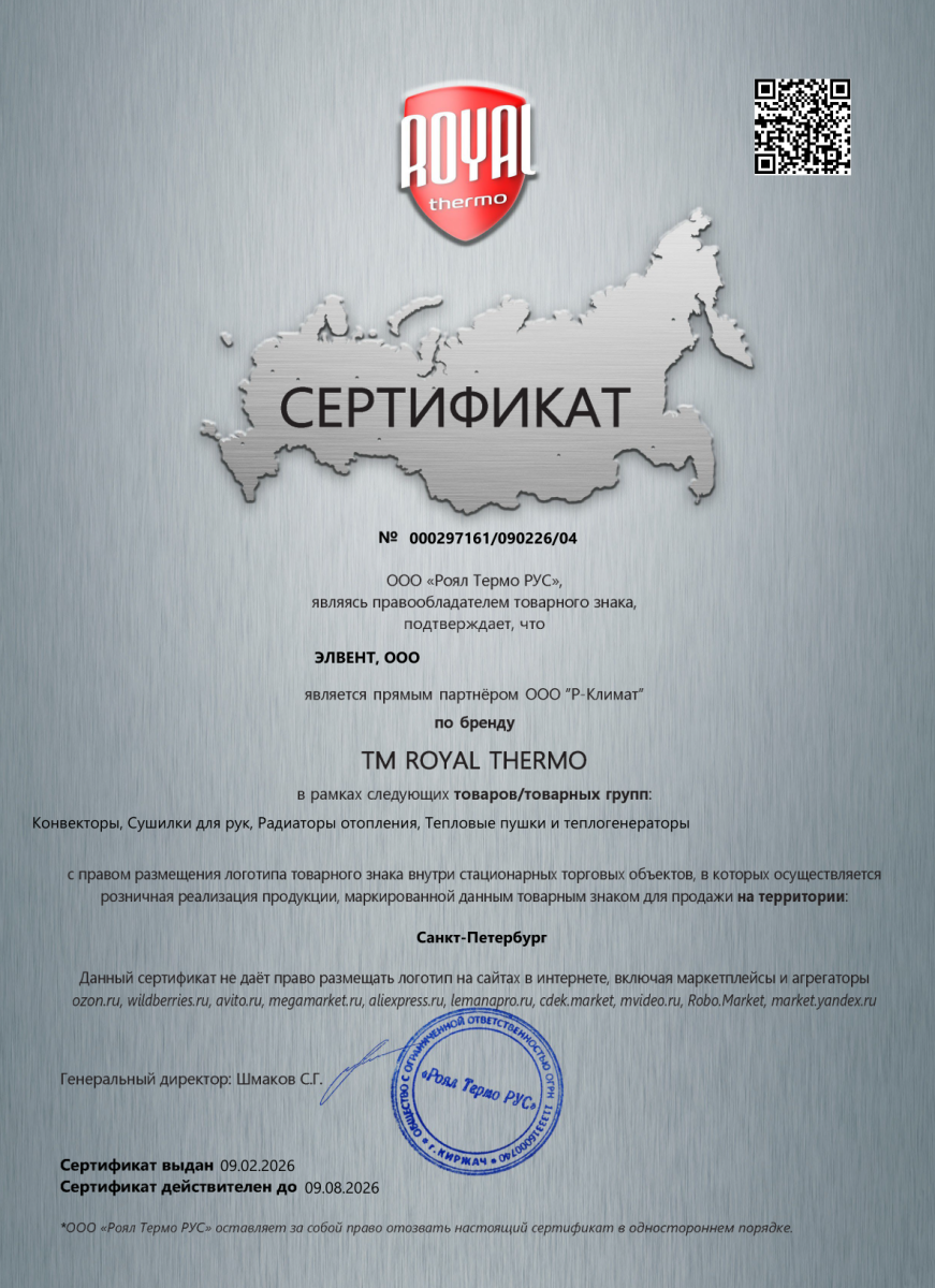 Да, на полотенцесушитель Royal Thermo Ватра П8 500х796 (2+4+2) с полкой действует гарантия от производителя. Все товары сертифицированы, и вы можете быть уверены в их качестве.