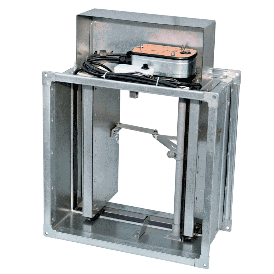 В качестве управляющего оборудования автоматики на канальный огнезадерживающий клапан монтируется противопожарный электропривод с возвратной пружиной одной из трёх серии: BFL (4Нм), BFN (9 Нм) и BF (18 Нм), напряжение питания 24В (МВ24) или 230В (МВ220). Дополнительный элемент автоматики - термодатчик, который обрывает цепь питания при достижении воздуха 72°С. Датчик, по запросу, можно заменить на 93°С или 141°С.