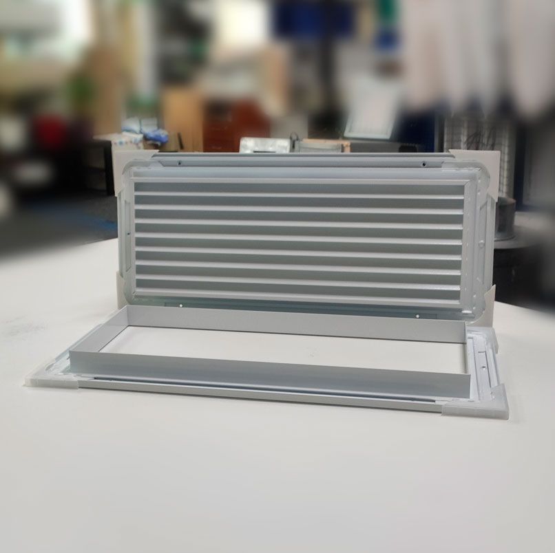 Решетка AP устанавливается в стену или дверной проем и крепится саморезами. Внутренняя рама устанавливается напротив места установки. В зависимости от габаритных размеров рамы она может устанавливаться на стены и двери толщиной 25-50 мм.