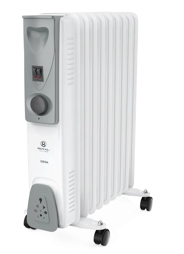 Новая серия масляных радиаторов SIENA от ROYAL Clima обладает надежностью, долговечностью и безопасностью, а также увеличенной шириной радиаторной решетки, за счет которой повысилась теплопроизводительность прибора. Модельный ряд SIENA включает в себя модели мощностью от 1 до 2,5 кВт и рассчитанные на эффективный обогрев помещения площадью до 30 кв.м.