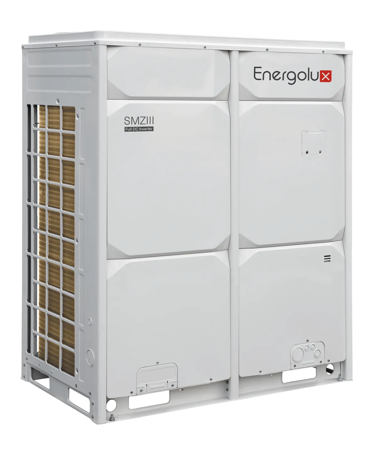Могут объединяться в единую модульную систему из 4-х наружных блоков создавая систему холодопроизводительностью до 246 кВт.