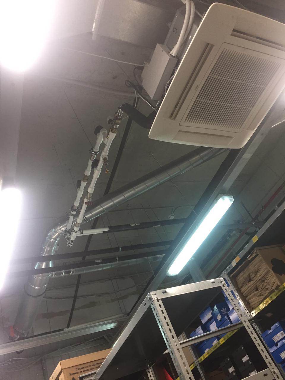 Монтаж фанкойлов, монтаж пожарных клапанов, разводка воздуховодов, пайка PPR,монтаж узлов, установка дренажных помп, покраска потолков, установка решеток.