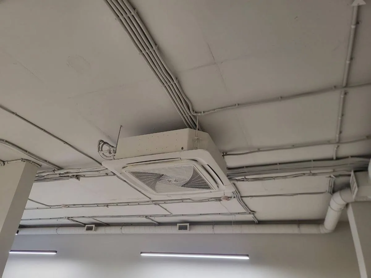 В помещении, где размещаются офисы с рабочими местами, смонтирована система вентиляции, согласно проекту.